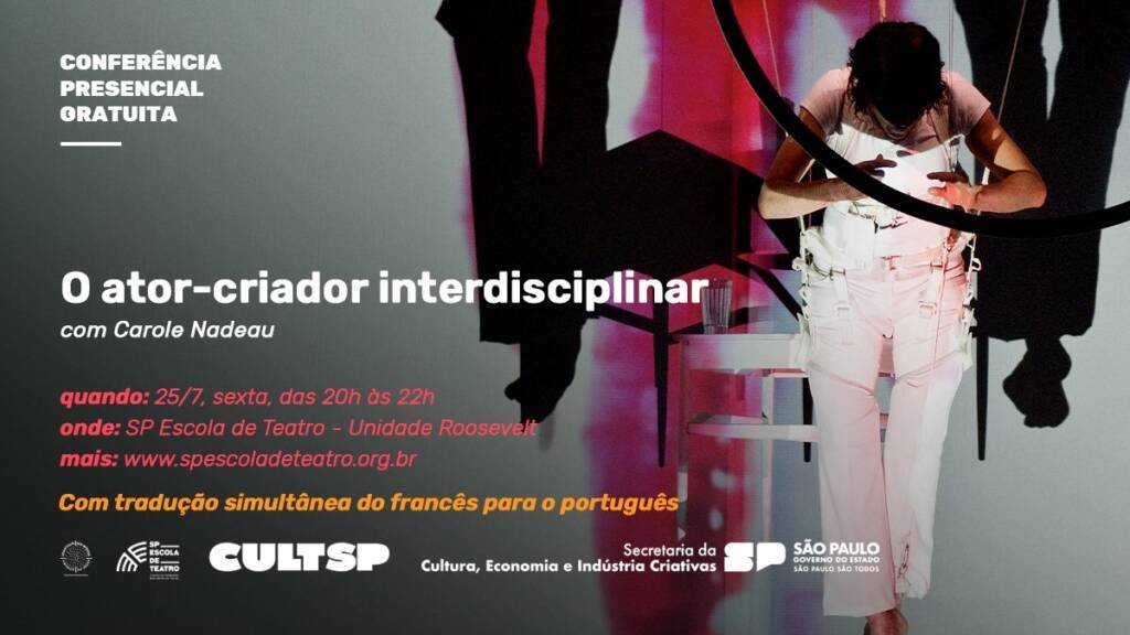Acontece em 25 de julho na unidade Roosevelt da SP Escola de Teatro – Centro de Formação das Artes do Palco a conferência internacional gratuita “O ator-criador interdisciplinar”, com a artista canadense Carole Nadeau.