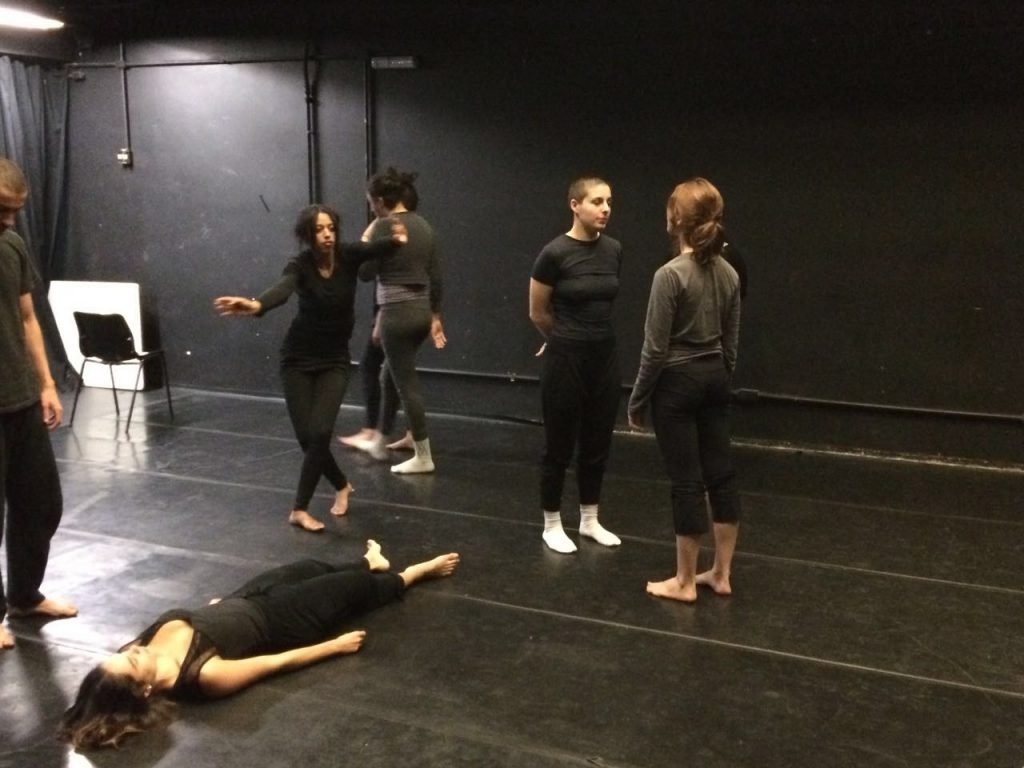 Aliça, que tem os cabelos raspados, em exercício da aula do Curso Regular de Atuação