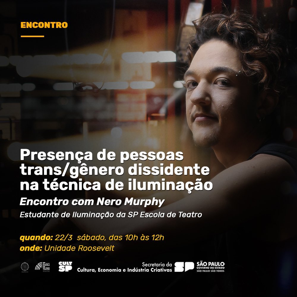 Acontece nesse sábado 22/3, das 10h às 12h, o encontro “Presença de pessoas trans/gênero dissidente na técnica de Iluminação”.