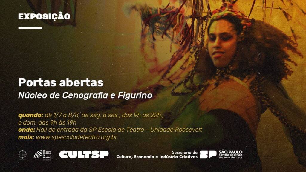 Até 8 de agosto, fica em exposição no hall de entrada da unidade Roosevelt da SP Escola de Teatro – Centro de Formação das Artes do Palco figurinos e cenografias que fazem parte da mostra Portas Abertas.