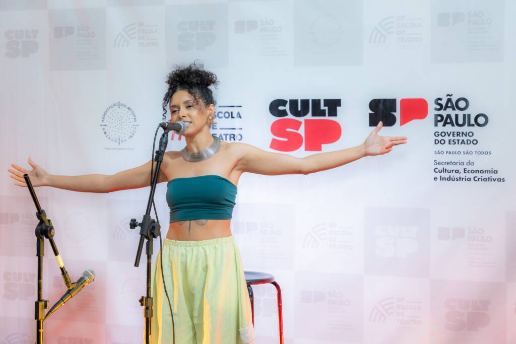 A noite iniciou com belo show de Nina Oliveira, artista egressa da SP Escola de Teatro, seguido de fala de Ivam Cabral, diretor-executivo da SP Escola de Teatro, e de Eunice Prudente, conselheira da Associação dos Artistas Amigos da Praça (ADAAP), a associação que gere a Escola.