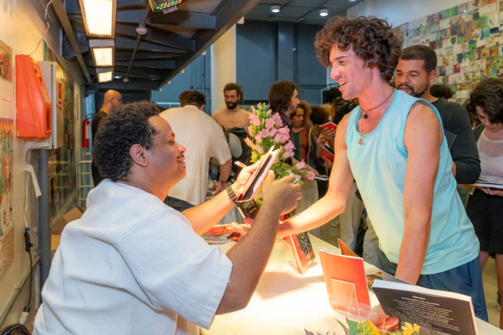 Depois, foi a hora de celebrar o livro resultante da sexta edição do Prêmio Solano Trindade, com dramaturgias inéditas dos vencedores Blendon Cassio, Clarissa Roberta e Ray Ariana. Por vídeo e presencialmente, os autores falaram ao público sobre seus textos e sobre a premiação.