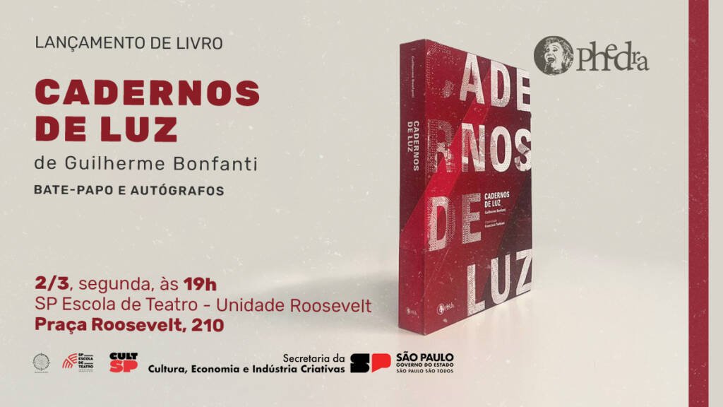 O iluminador Guilherme Bonfanti, coordenador do curso de Iluminação da SP Escola de Teatro – Centro de Formação das Artes do Palco, lança em 2/3 pelo Selo Phedra os Cadernos de Luz, quatro livros reunidos em um box que trazem os relatos preciosos de quatro trabalhos desenvolvidos ao longo dos anos na cena brasileira.