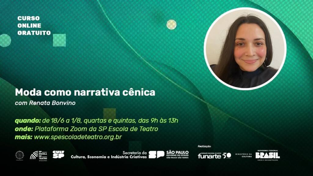 Estão abertas até 15 de junho as inscrições para o curso de extensão online e gratuito “Moda como narrativa cênica”, a ser ministrado por Renata Bonvino.