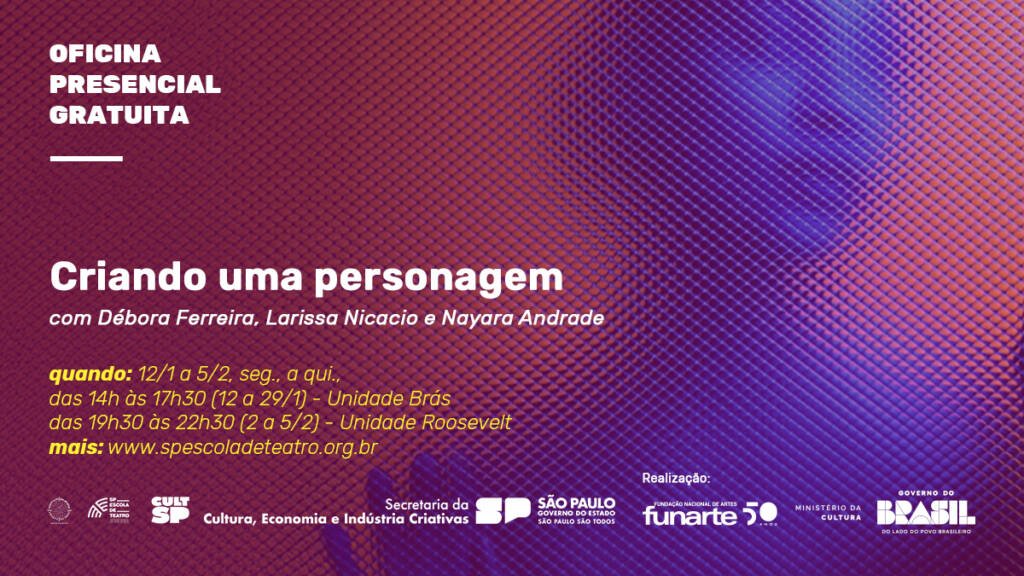 Ele articula três módulos: criação dramatúrgica, desenvolvimento da identidade visual via figurino e visagismo e criação prática por meio de máscaras. Ao final, cada participante terá elaborado um personagem autoral, compreendendo como texto, corpo e imagem se articulam na prática teatral.