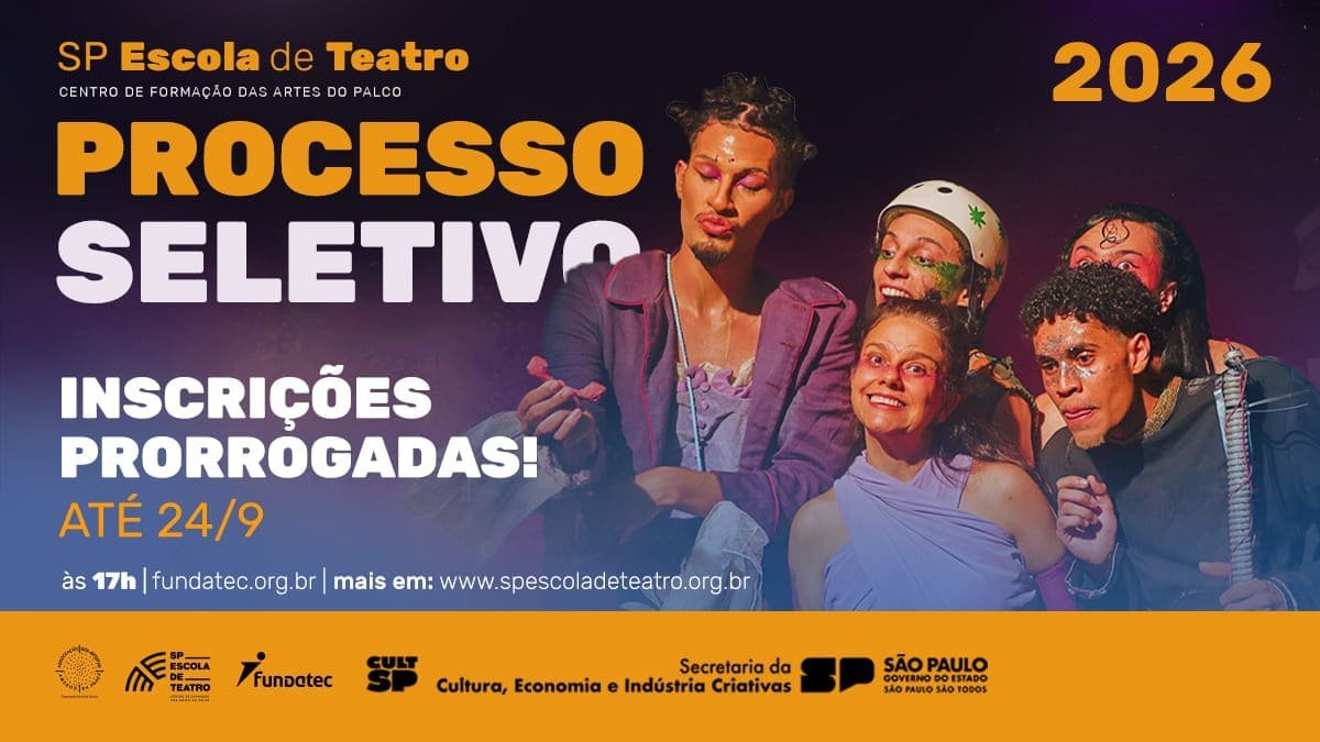 Processo Seletivo do 1º semestre de 2026 da SP Escola de Teatro: inscrições prorrogadas até 24/9!