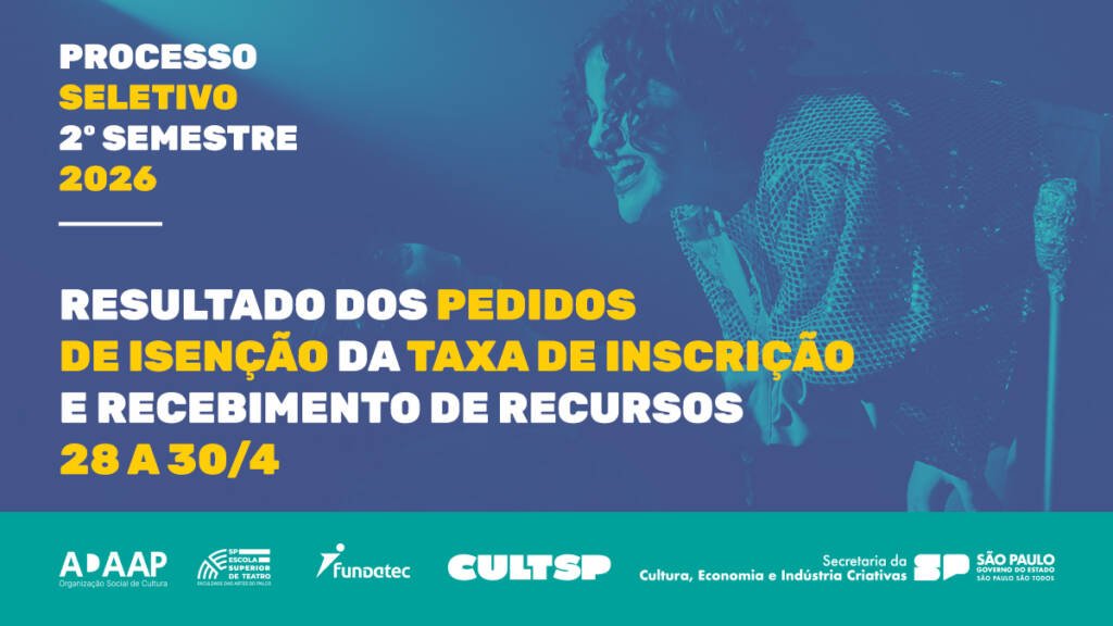 A SP Escola Superior de Teatro – Faculdade das Artes do Palco e a Fundatec divulgaram o Edital com o resultado preliminar dos pedidos de isenção da taxa de inscrição do Processo Seletivo 2026/2º semestre.