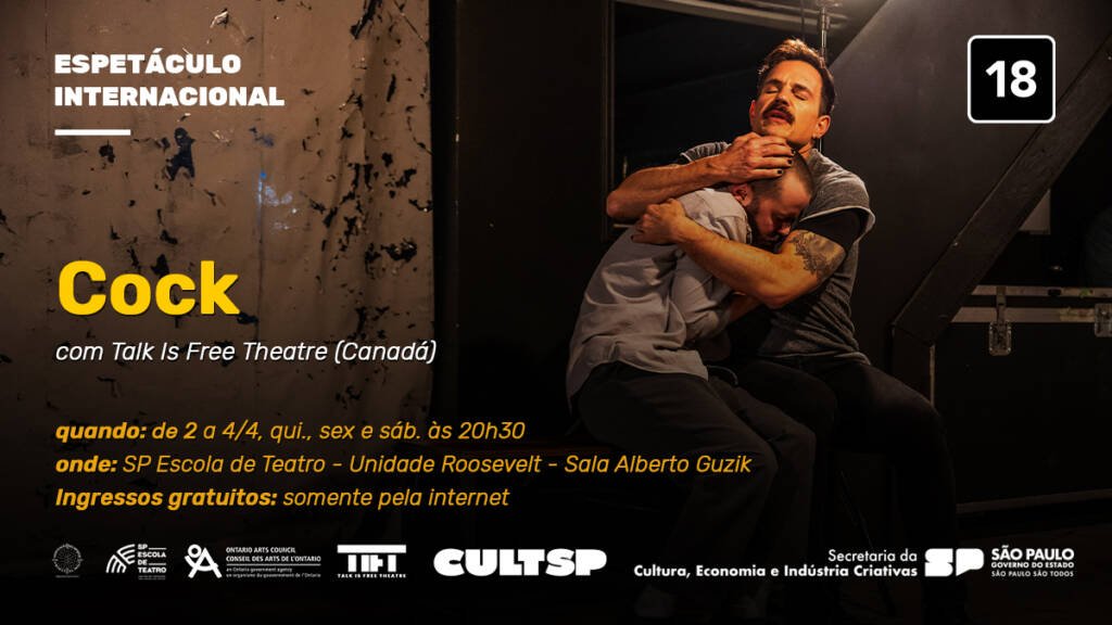 O Talk Is Free Theatre (TIFT), do Canadá, apresenta sua peça “Cock” de 2 a 4 de abril na SP Escola de Teatro – Centro de Formação das Artes do Palco.