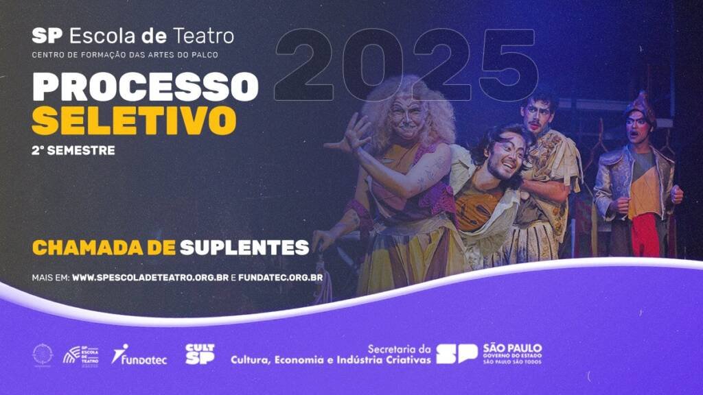 A SP Escola de Teatro – Centro de Formação das Artes do Palco, instituição da Secretaria da Cultura, Economia e Indústria Criativas do Estado de São Paulo, e a Fundatec divulgaram hoje (21) a lista de suplentes convocados para matrícula no processo seletivo 2025/2º semestre.