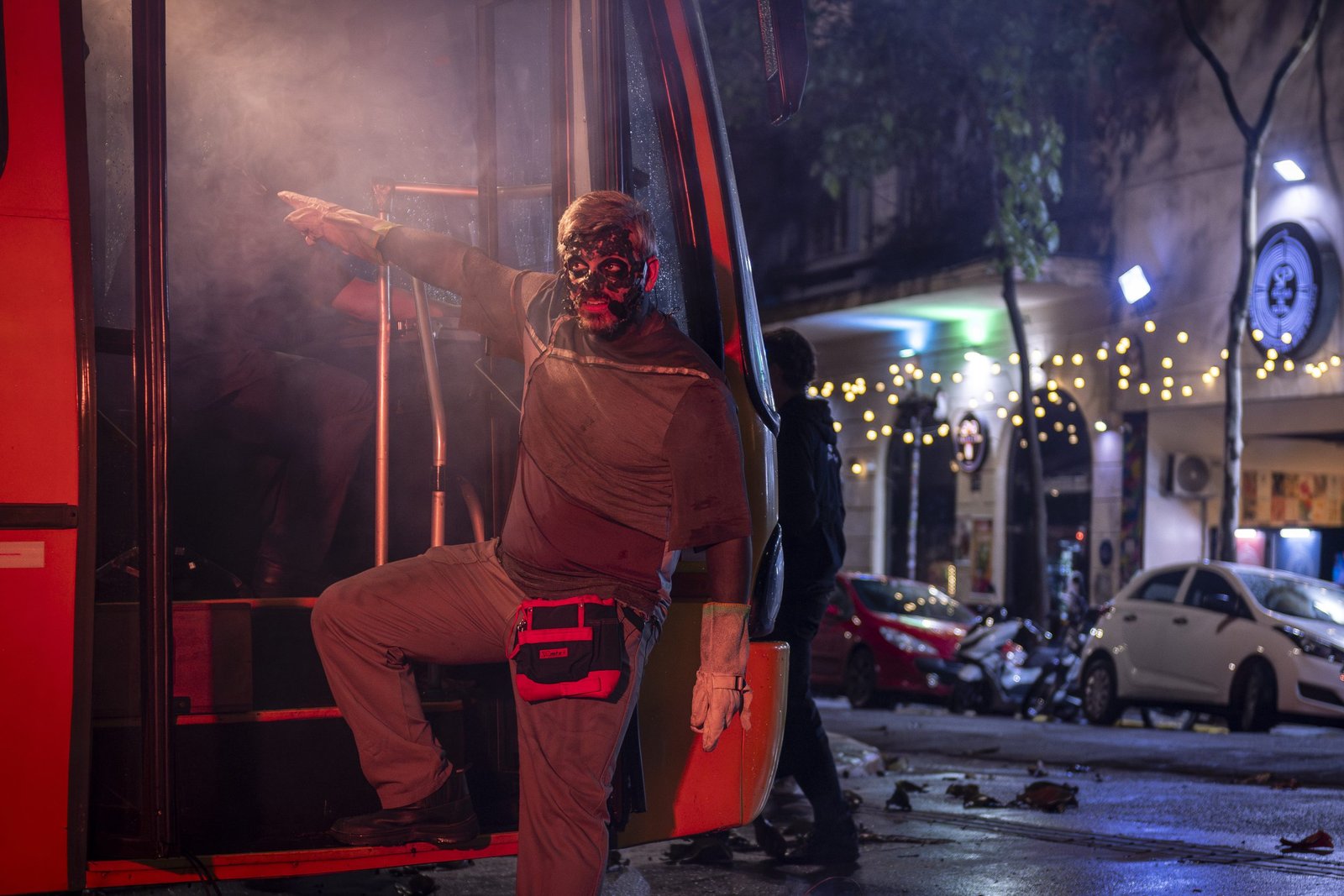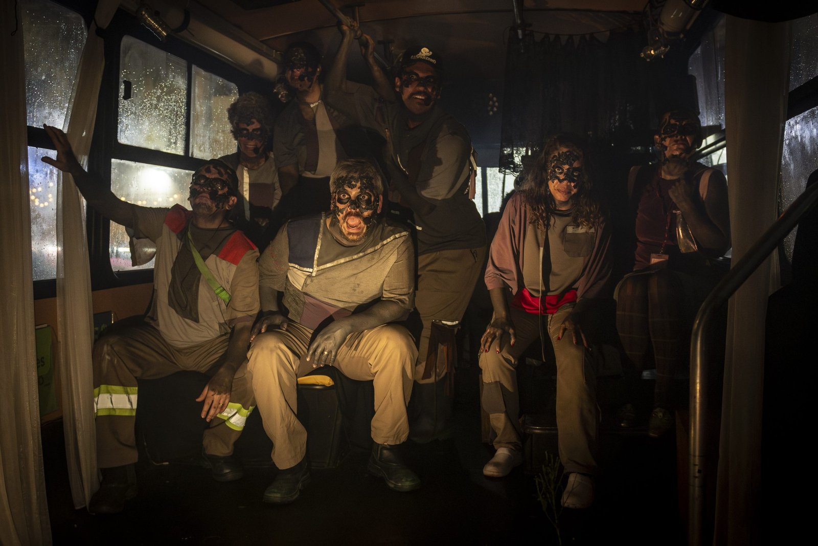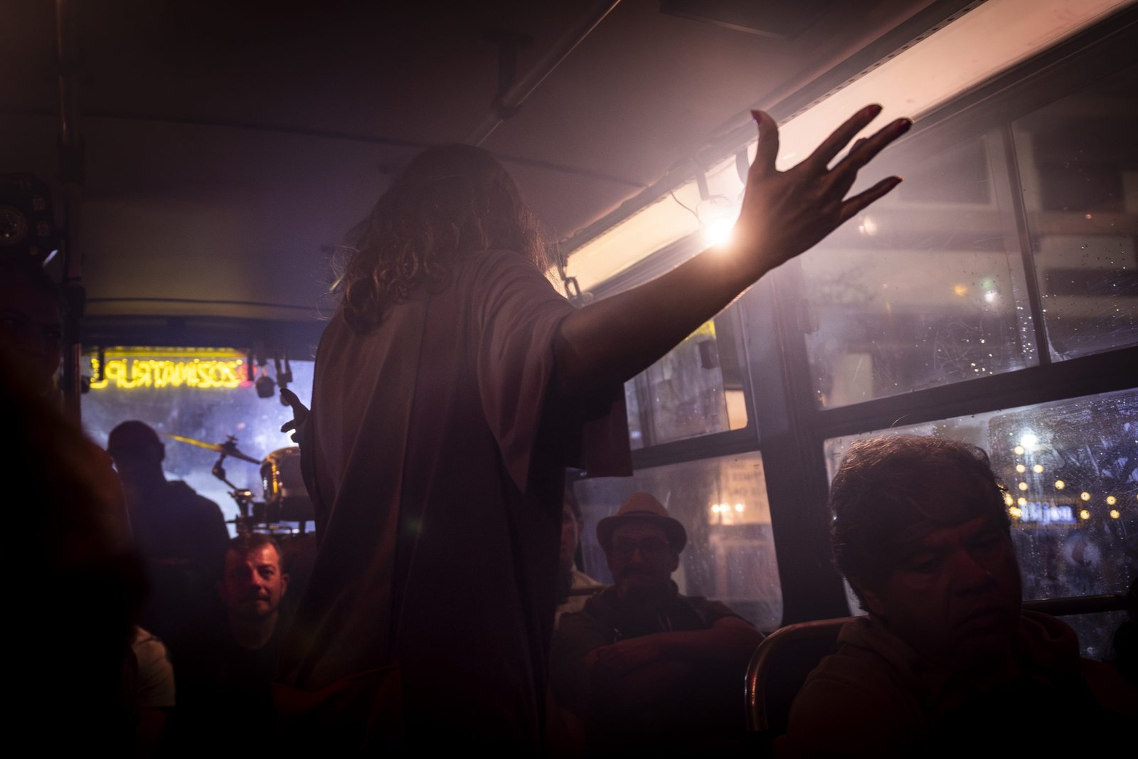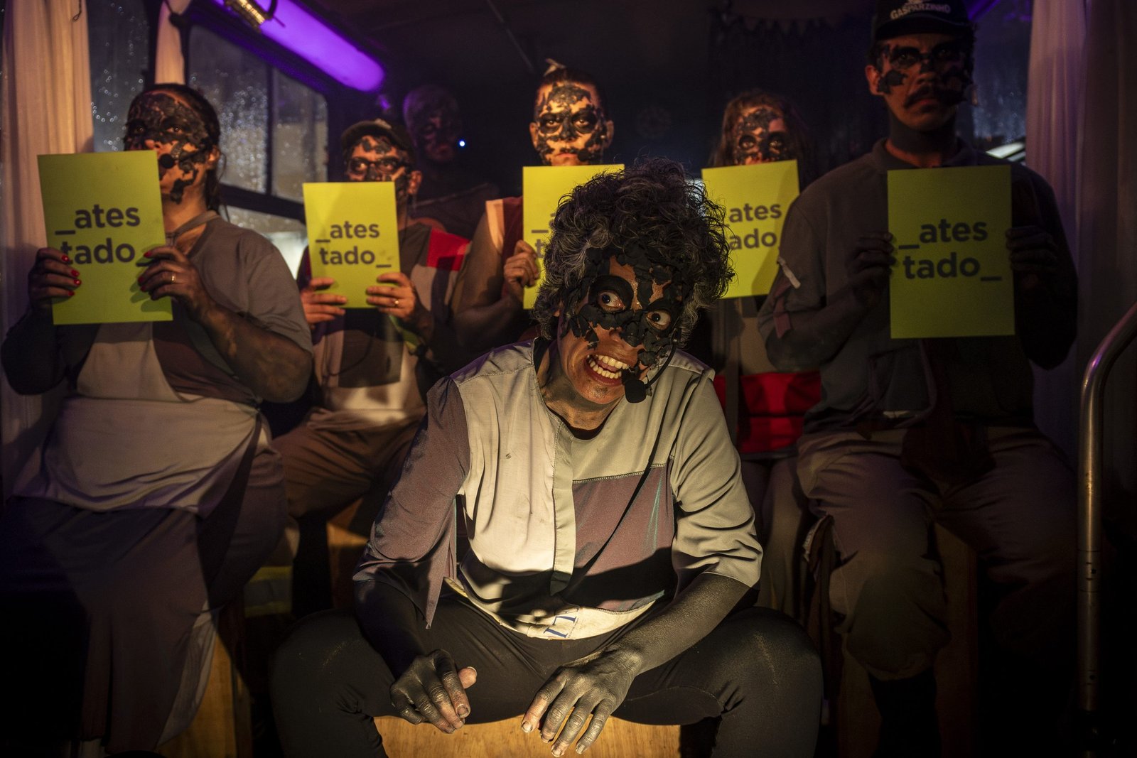 Durante a pandemia, o ônibus não parou e seguiu seu itinerário. Em suas lotações, cada vez mais ausências. O luto não-vivido divide espaço com a indignação. O espetáculo ocorre dentro de um ônibus, num tempo suspenso, um manifesto operístico-multimídia sobre morte, vida e movimento.