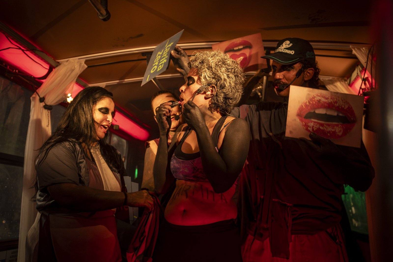 A peça ocorreu no ônibus da Zózima Trupe estacionado em frente à Escola.