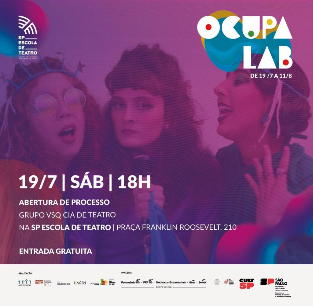 Dentro do projeto Ocupa Lab, a companhia de Pelotas VSQ Cia de Teatro faz apresentação gratuita ao público amanhã (19), às 18h, na unidade Roosevelt da SP Escola de Teatro – Centro de Formação das Artes do Palco.